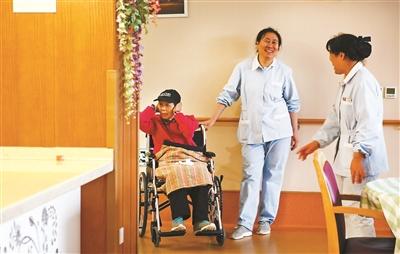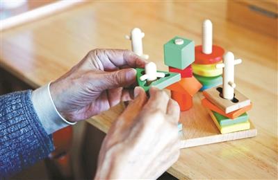 老人在護理員的陪同下玩益智玩具,多動腦多動手,有益于保持一定的生活自理能力